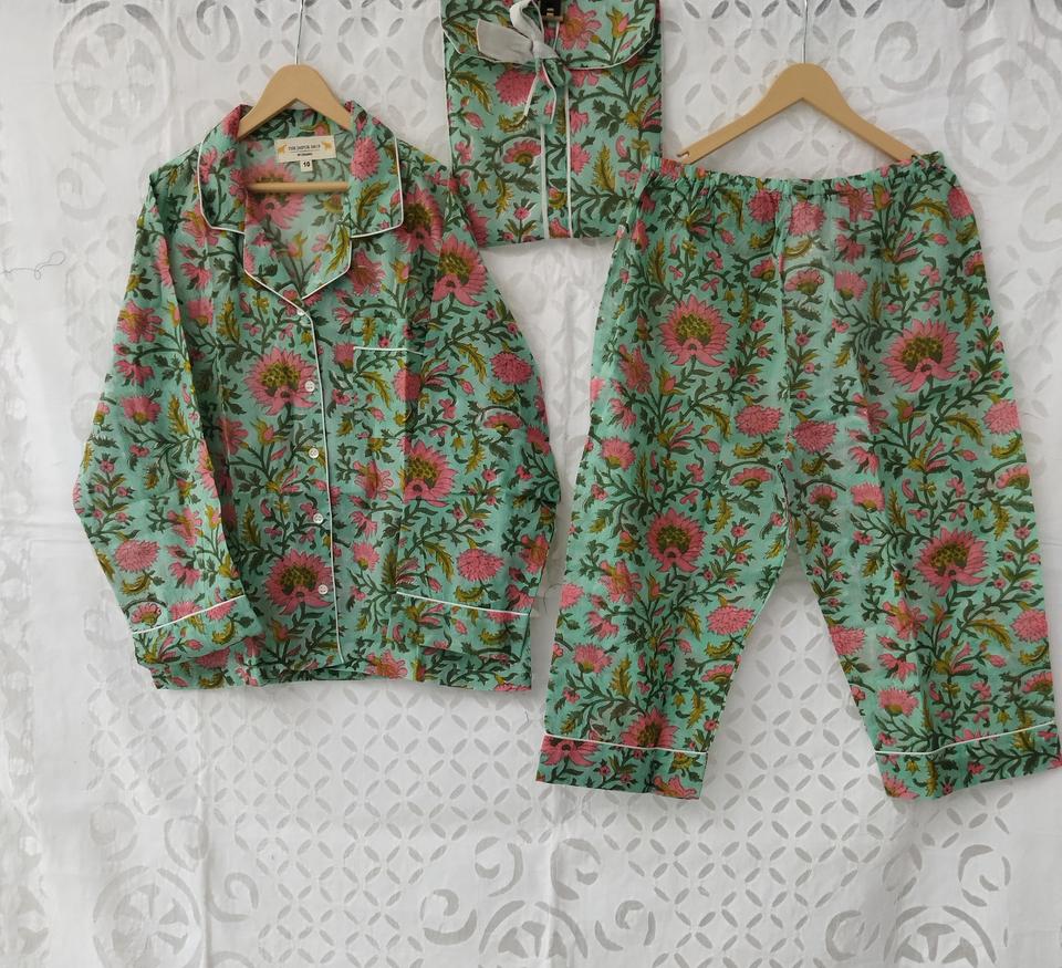Name:Beautiful Hand Block Printed Cotton Pajama Set For Kids