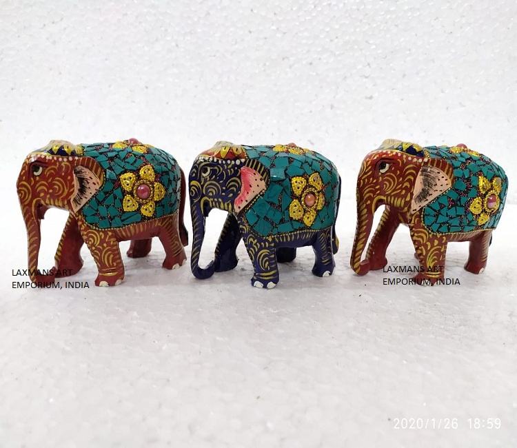 Belle sculptée à la main avec des statues d'éléphants en bois perlées en pierre exportateur en gros de l'Inde
