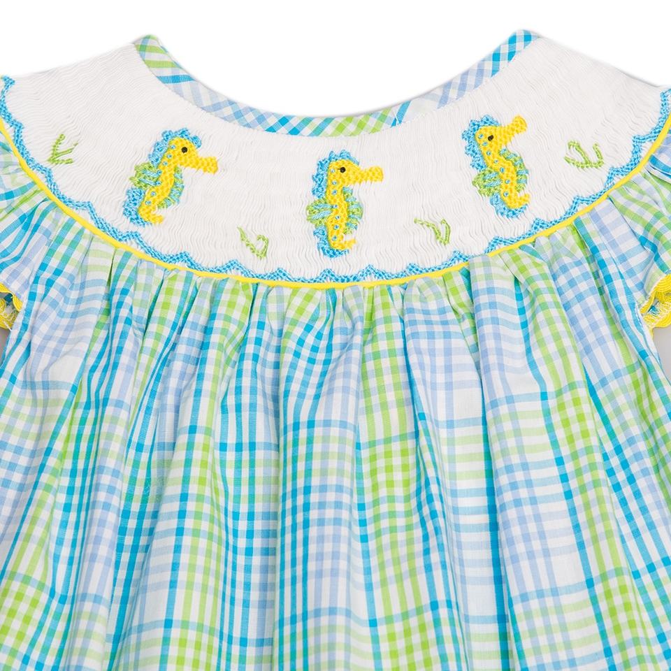 Belle robe hippocampe smockée à la main Style Long BB1830 pour la saison de printemps ODM fourni pour les enfants
