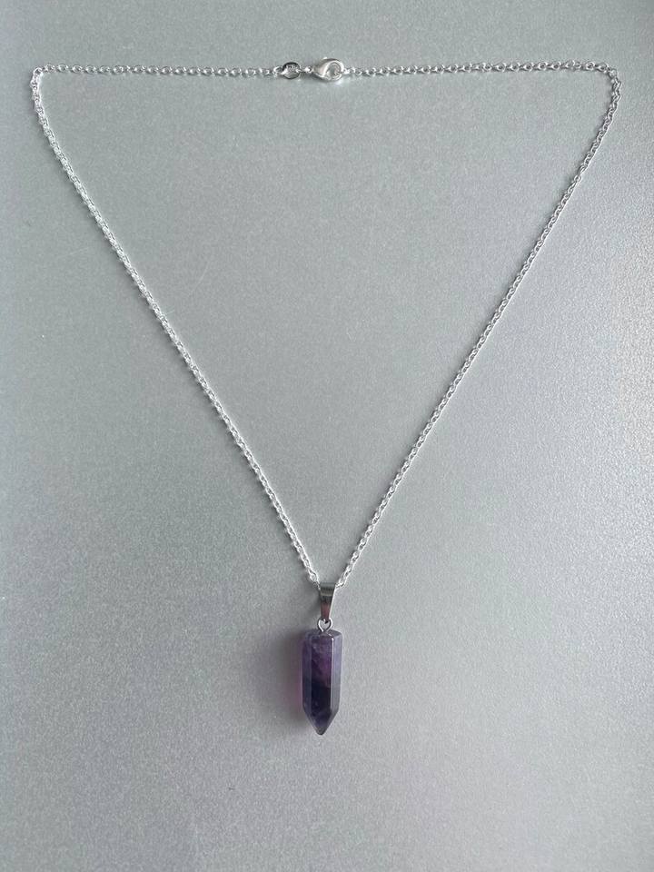 Belles chaînes religieuses faites à la main en forme de crayon à facettes en améthyste naturelle de 18 \ "pierres précieuses pointues en argent sterling 92.5