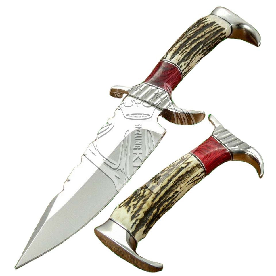 Poignée:Bois de cerf, bois avec pommeau et garde en acier