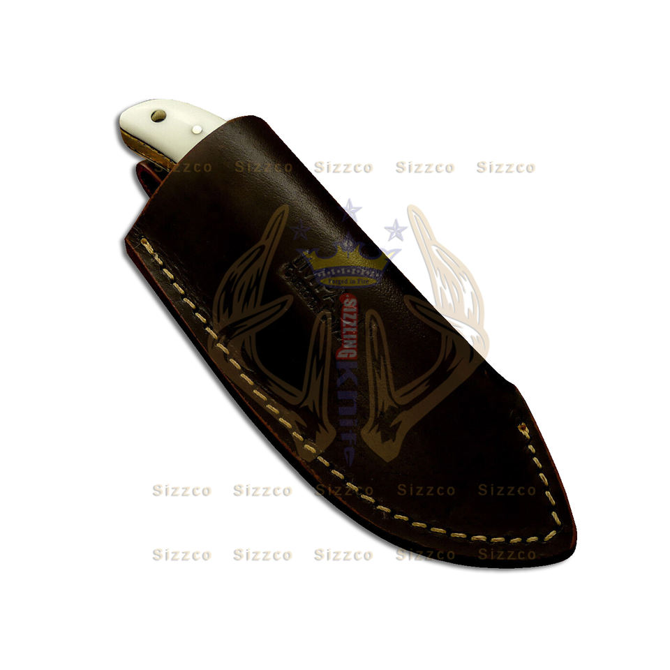 Beautiful Handmade Full Tang D2 Steel Fixed Blade Hunting Camping Skinning Knife Leather Sheath Ivorite Resin Handle OEM