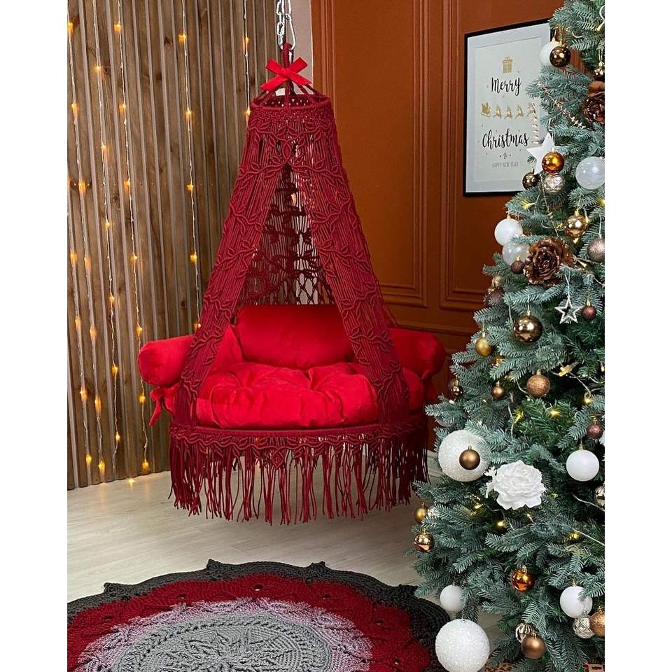 Magnifique chaise suspendue en macramé faite à la main, décoration de Noël, hamac suspendu pour une utilisation en intérieur et en extérieur, pour le salon