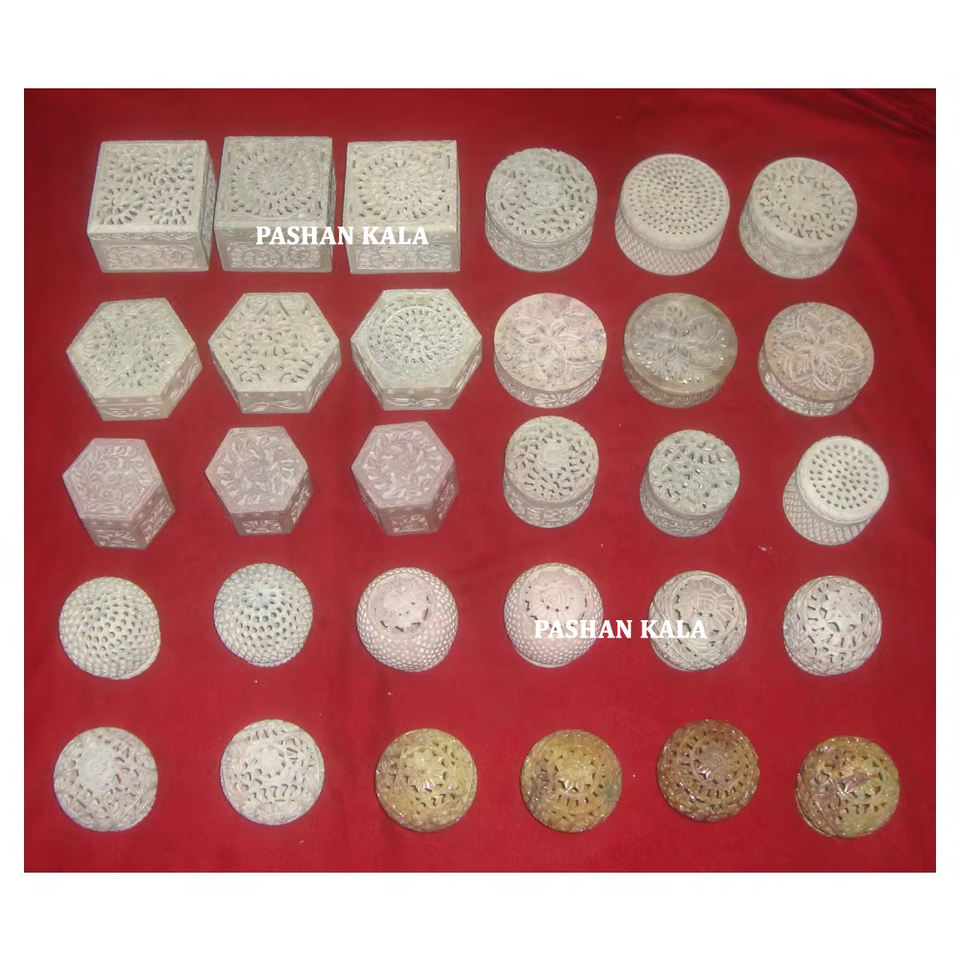 Boîtes à bijoux en pierre de savon naturelle sculptées à la main, avec forme personnalisée, couleur naturelle, utilisées pour la décoration de la maison et les cadeaux