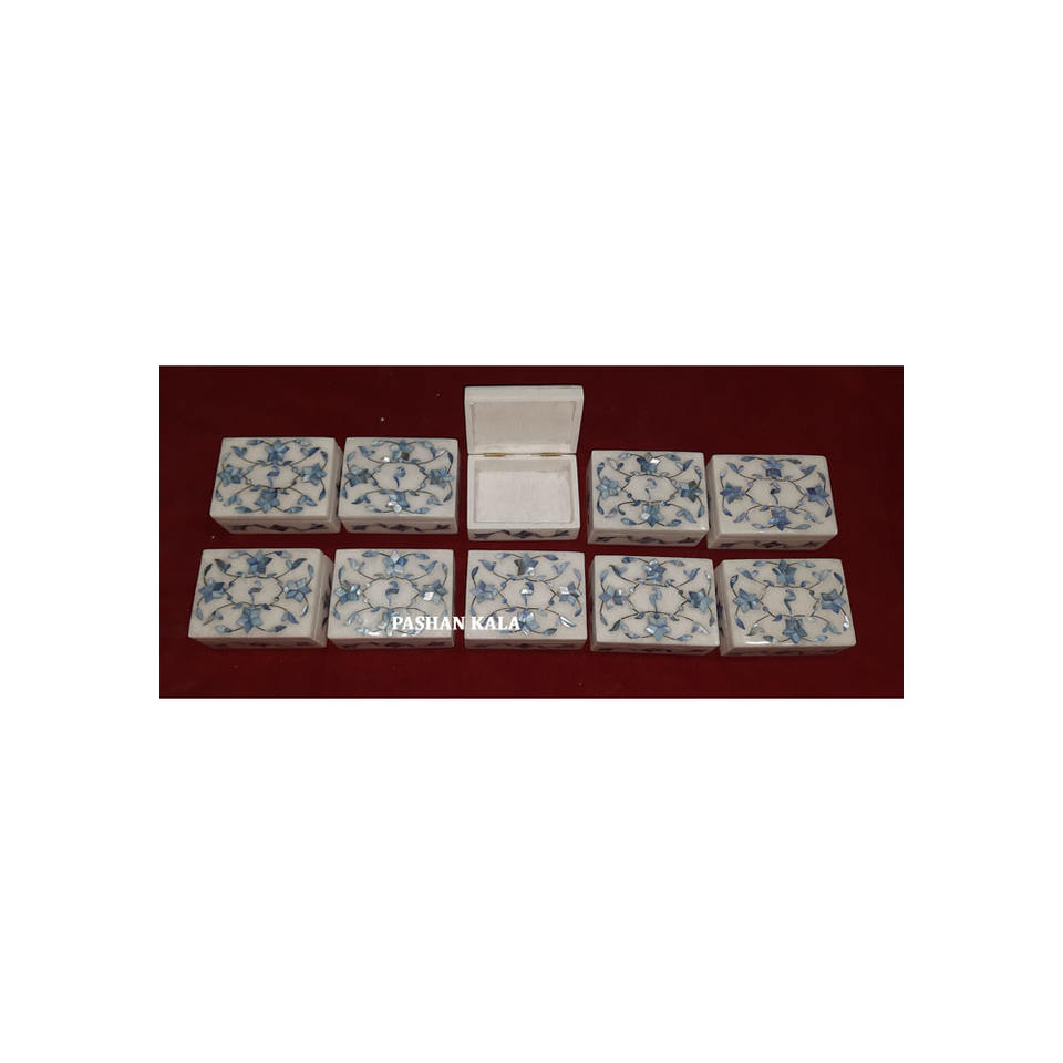 Belles boîtes à bijoux en nacre de marbre blanc bleu incrustation faites à la main avec quantité en vrac à bas prix boîtes à bijoux vadrouille