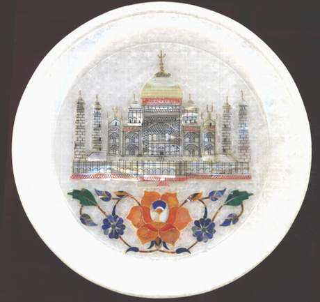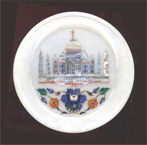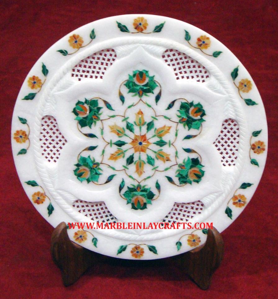 Belle assiette ronde en marbre blanc incrusté de fleurs, fabriquée à la main, de qualité supérieure, exportateur indien pour la décoration de la maison