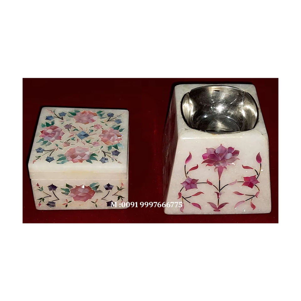 Magnifique boîte à bijoux et brûleur à bakhoor en marbre blanc fait main avec incrustations de nacre, forme personnalisée, utilisée pour Thanksgiving