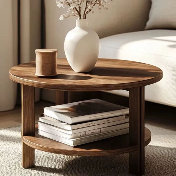 Belle table basse en bois faite à la main pour la décoration de salon avec un charme rustique naturel et un style intérieur intemporel