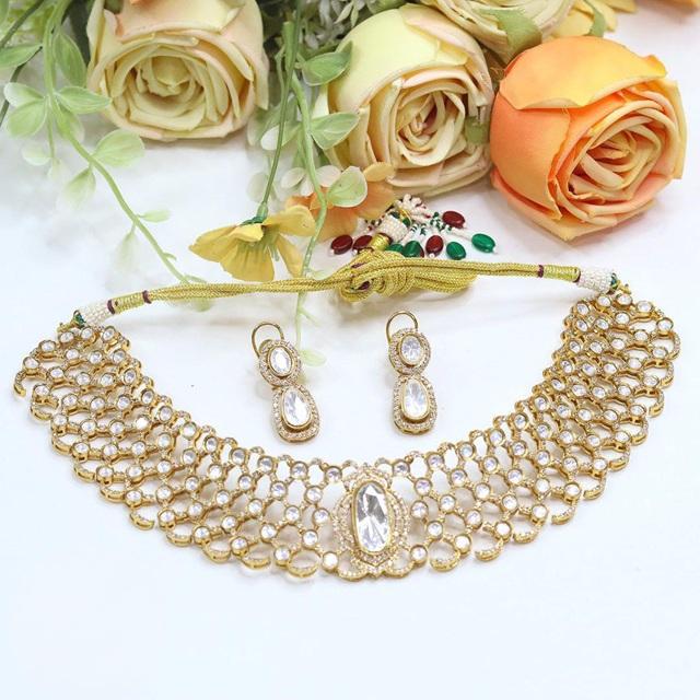Magnifique ensemble de collier et boucles d'oreilles plaqué or de haute qualité avec pierres, collection de bijoux pour femmes, idéal pour les mariages