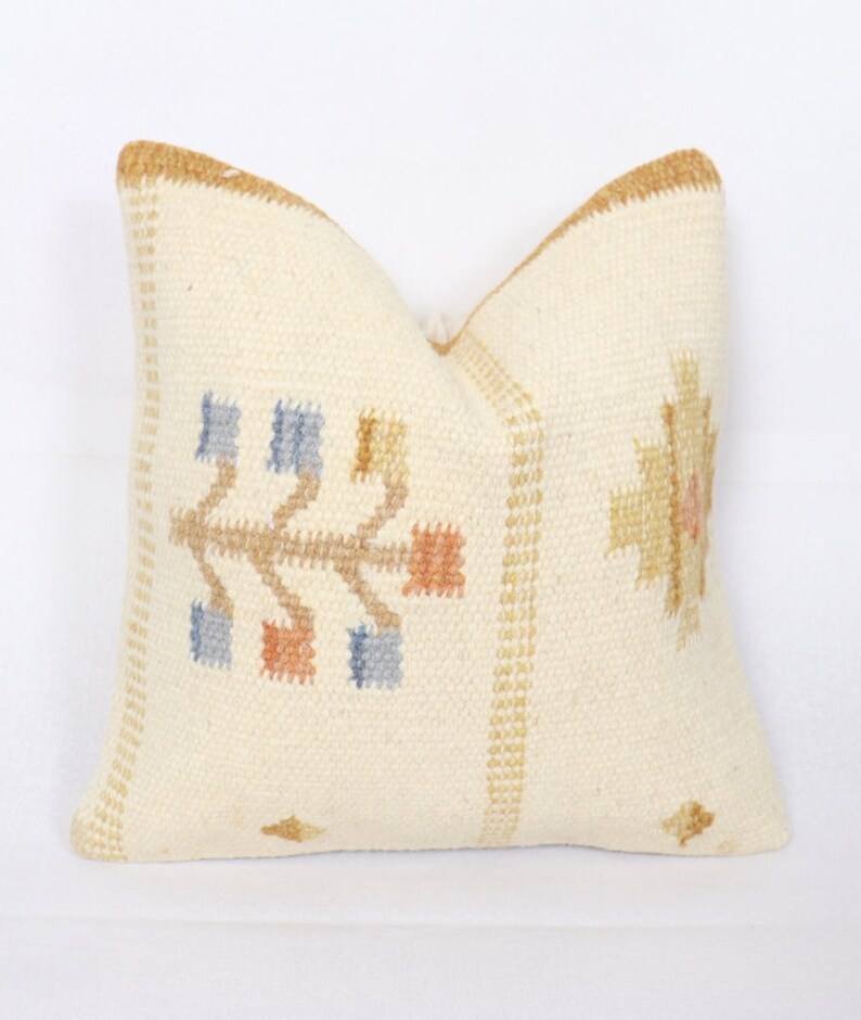 Housse de coussin en kilim de laine faite à la main, style vintage turc bohème, taie d'oreiller en kilim de laine tissée à la main, décorative ethnique tribale