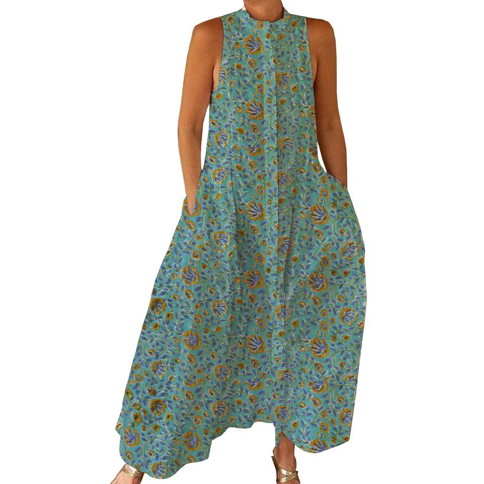 Combinaison en coton imprimé à la main indienne pour femmes Combinaison imprimée à la main décontractée bohème pour le printemps/été Adultes