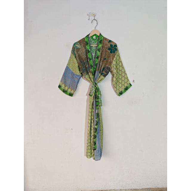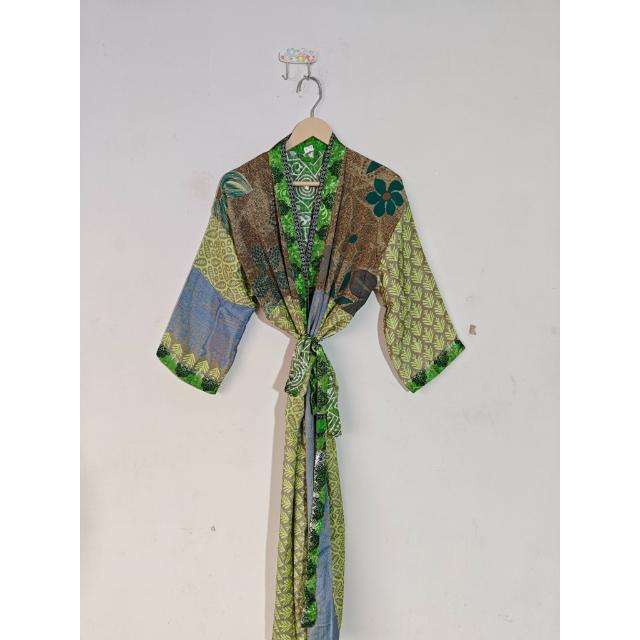 Belle robe en soie recyclée Kimono indien robe de maternité vêtements de nuit d'été thermiques vêtements de plage bohème Bikini couverture Dressing