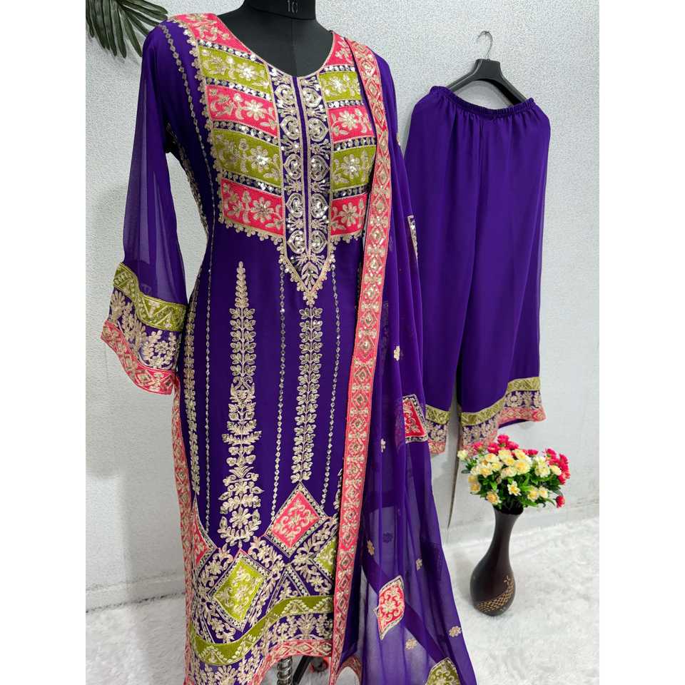 Magnifique ensemble de fête indien et pakistanais avec haut, bas et dupatta
