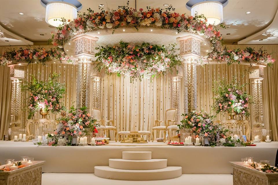 Belles nouvelles conceptions de Mandap de mariage hindou de fibre ronde d'intérieur pour des cérémonies de mariage indiennes attrayantes