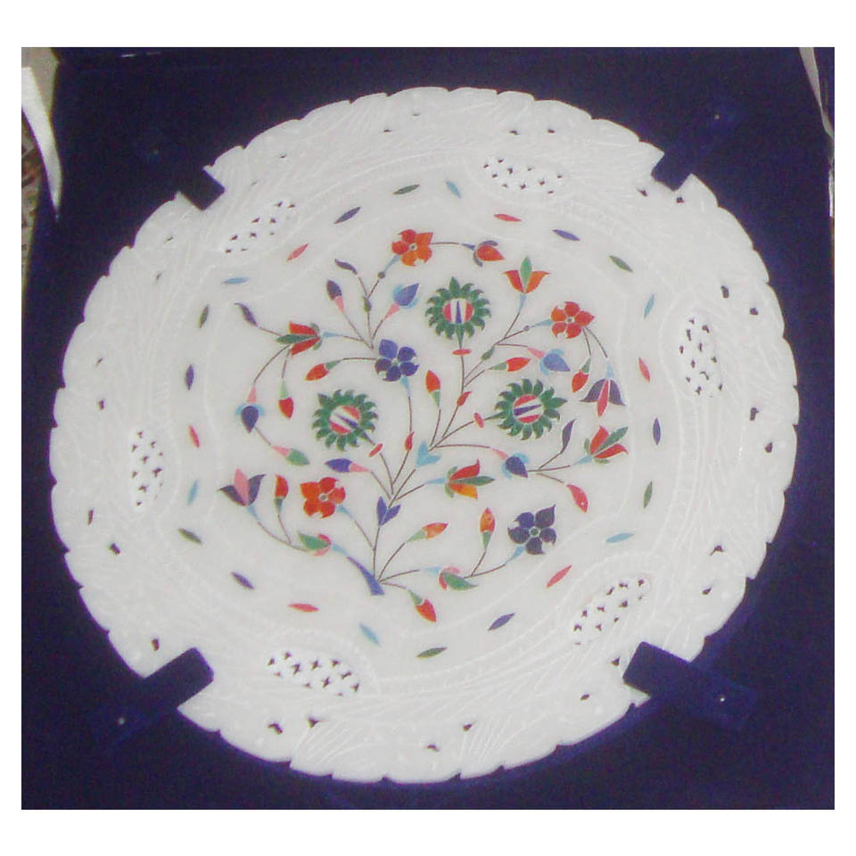 Nom du produit:Magnifique assiette en marbre sculpté et incrusté
