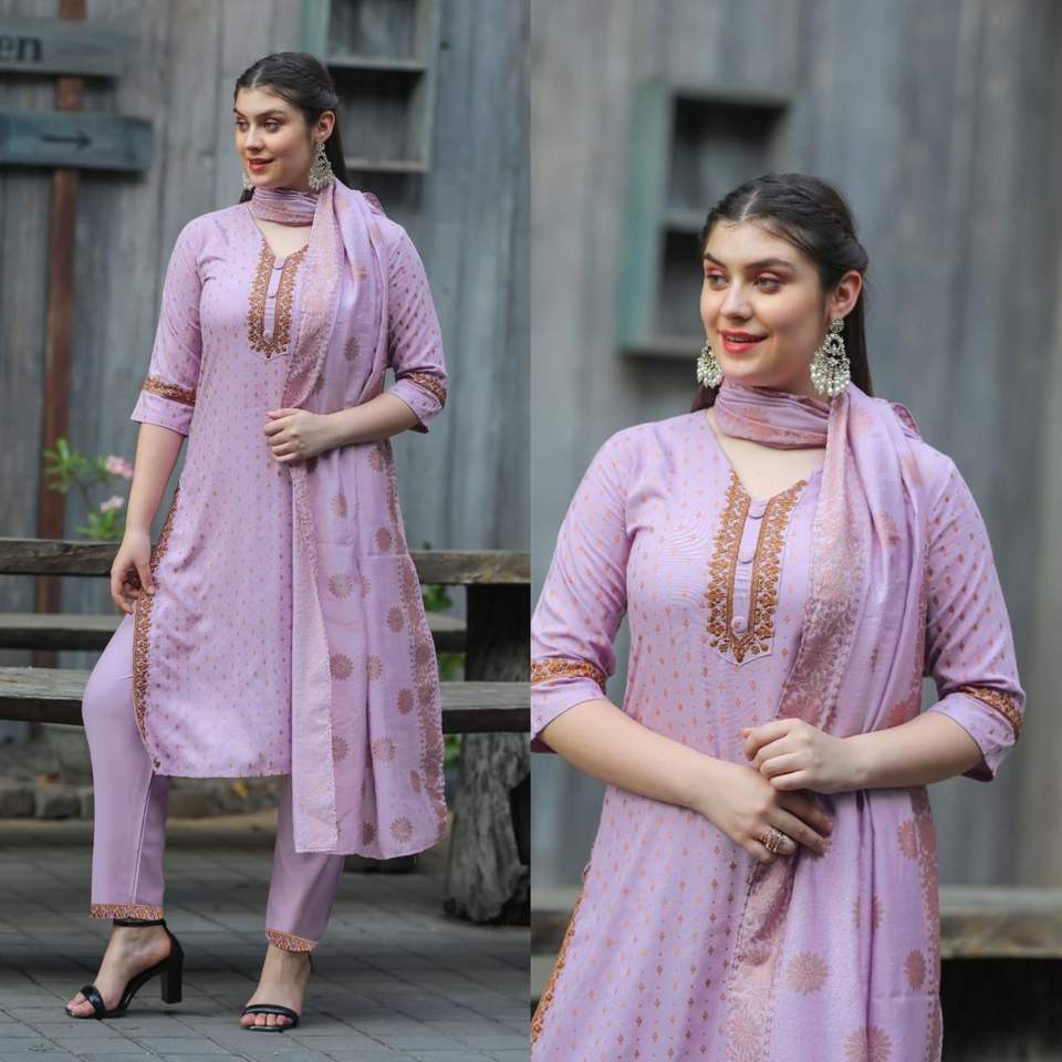 Beau costume de rayonne tissé Zari brodé à la main complexe ensemble de vêtements de fête traditionnels lourds pour adultes Style pakistanais indien