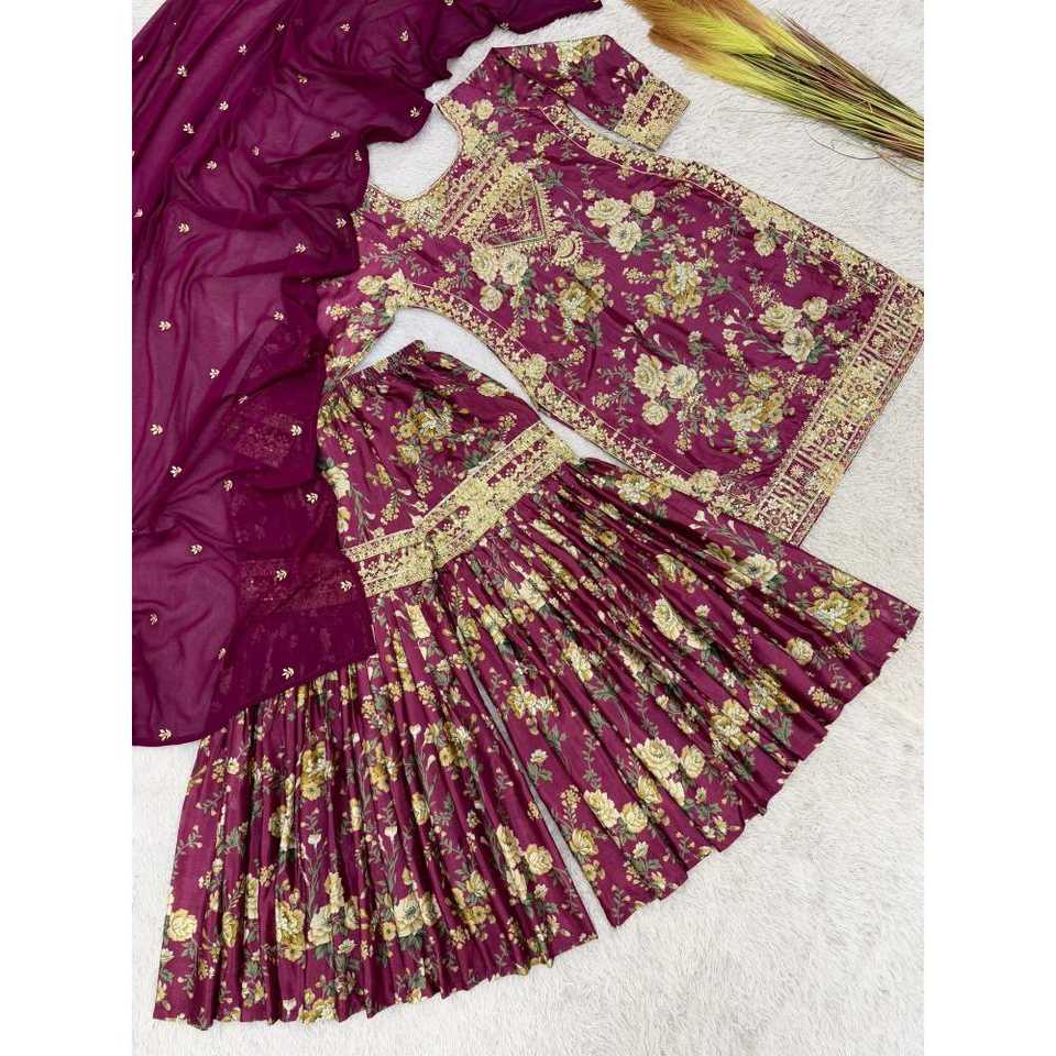 Beautiful JD Indian & Pakistani Clothing Elegant Top & Bottom with Dupatta in Purple Size M 900g for Party Wear