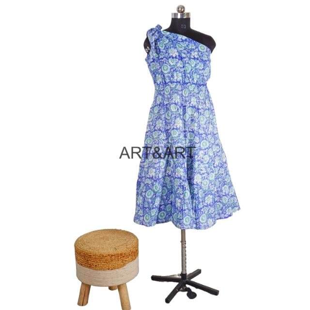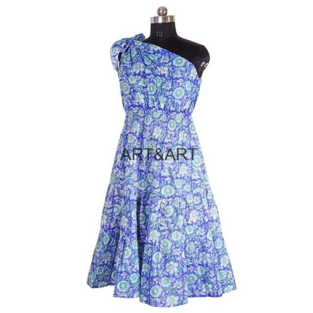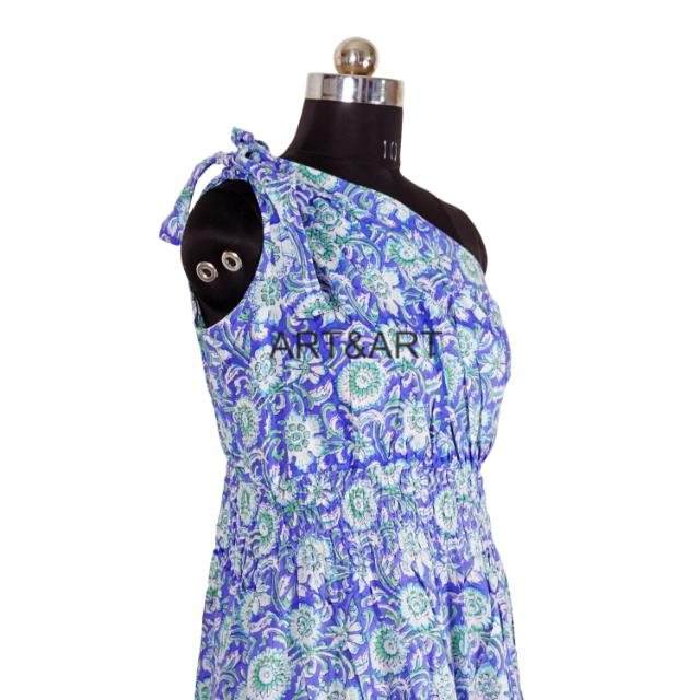 Elegant Casual Summer One-Shoulder Midi Dress Beautiful Korean Style Floral Print Sexy Cotton Sleeves High Waist Eco-Friendly
