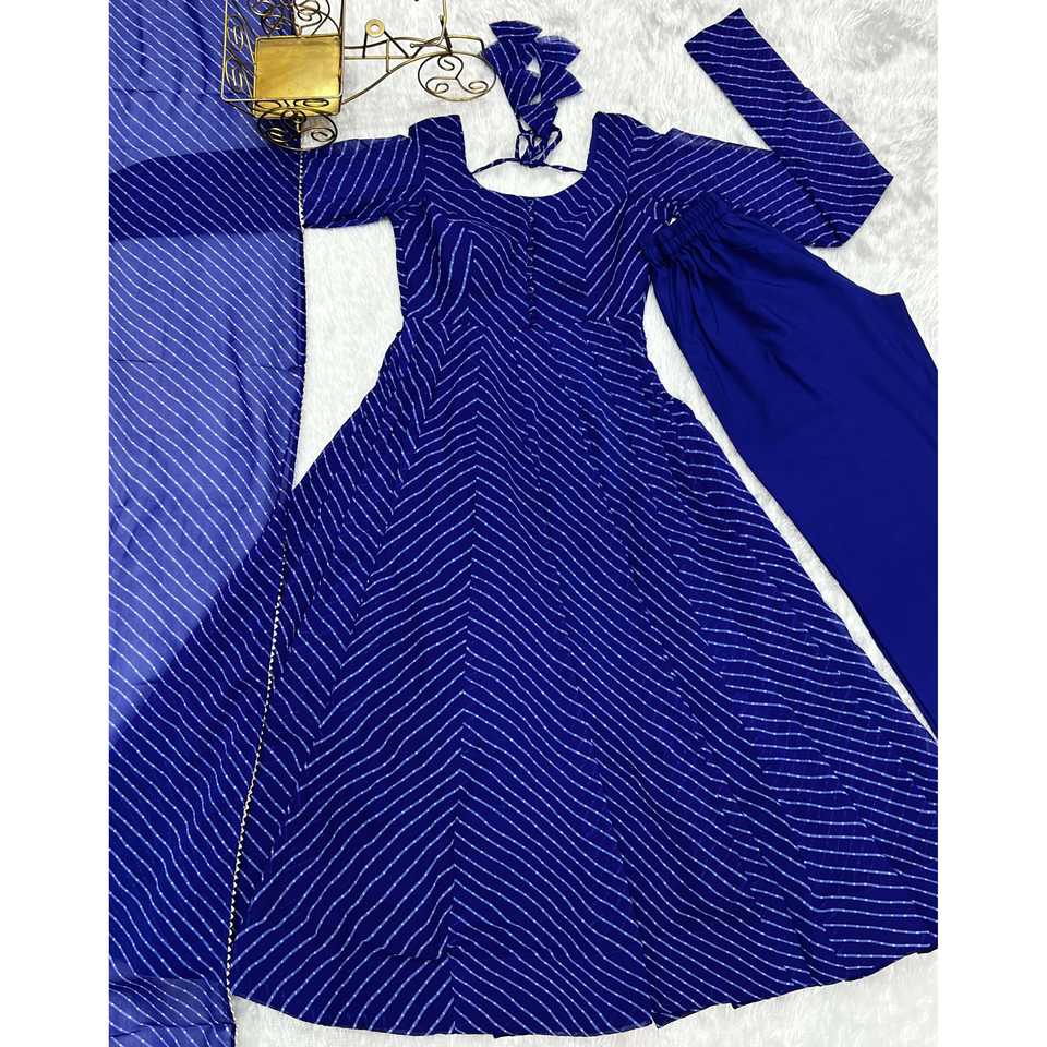 Beautiful Laheriya Print Gown and Dupatta Set for Parties Size XS