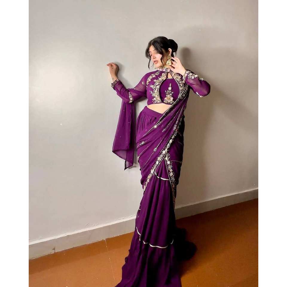 Magnifique Lehenga Saree pour les fêtes, travail de miroir, vêtements indiens et pakistanais