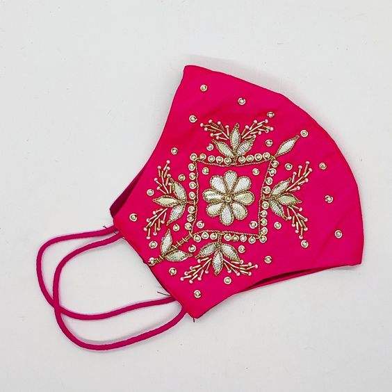Magnifique masque facial de mariage de luxe en coton, orné de broderies florales faites à la main et de perles, style décontracté, fait main
