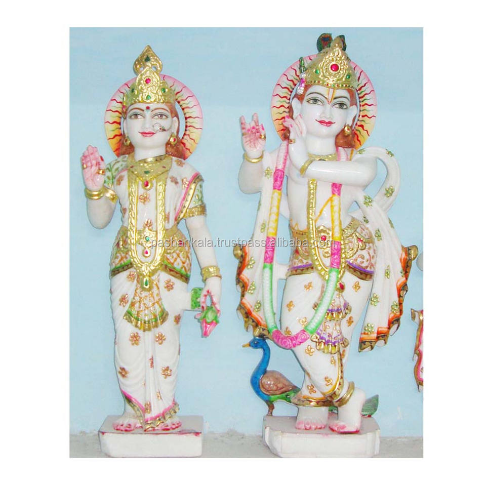 Magnifiques statues religieuses en marbre de Radha Krishna, faites à la main, pour la vénération à domicile, hindouisme