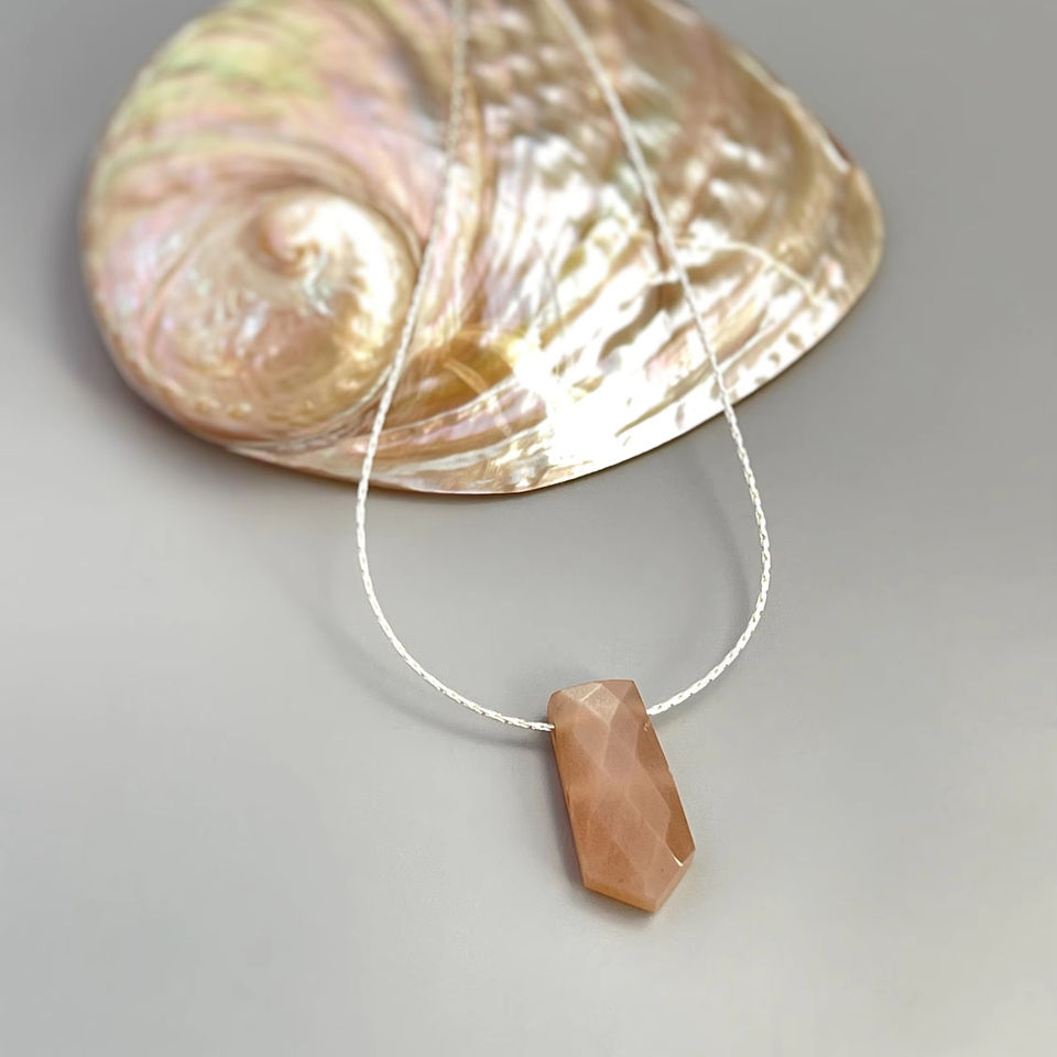 Belle conception minimale faite à la main or galvanisé pêche pierre de lune pendentif collier pierre précieuse naturelle lien chaîne cadeau parfait