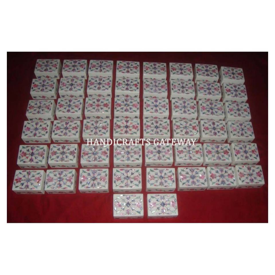 Boîte à bijoux en marqueterie de marbre blanc, boîte cadeau