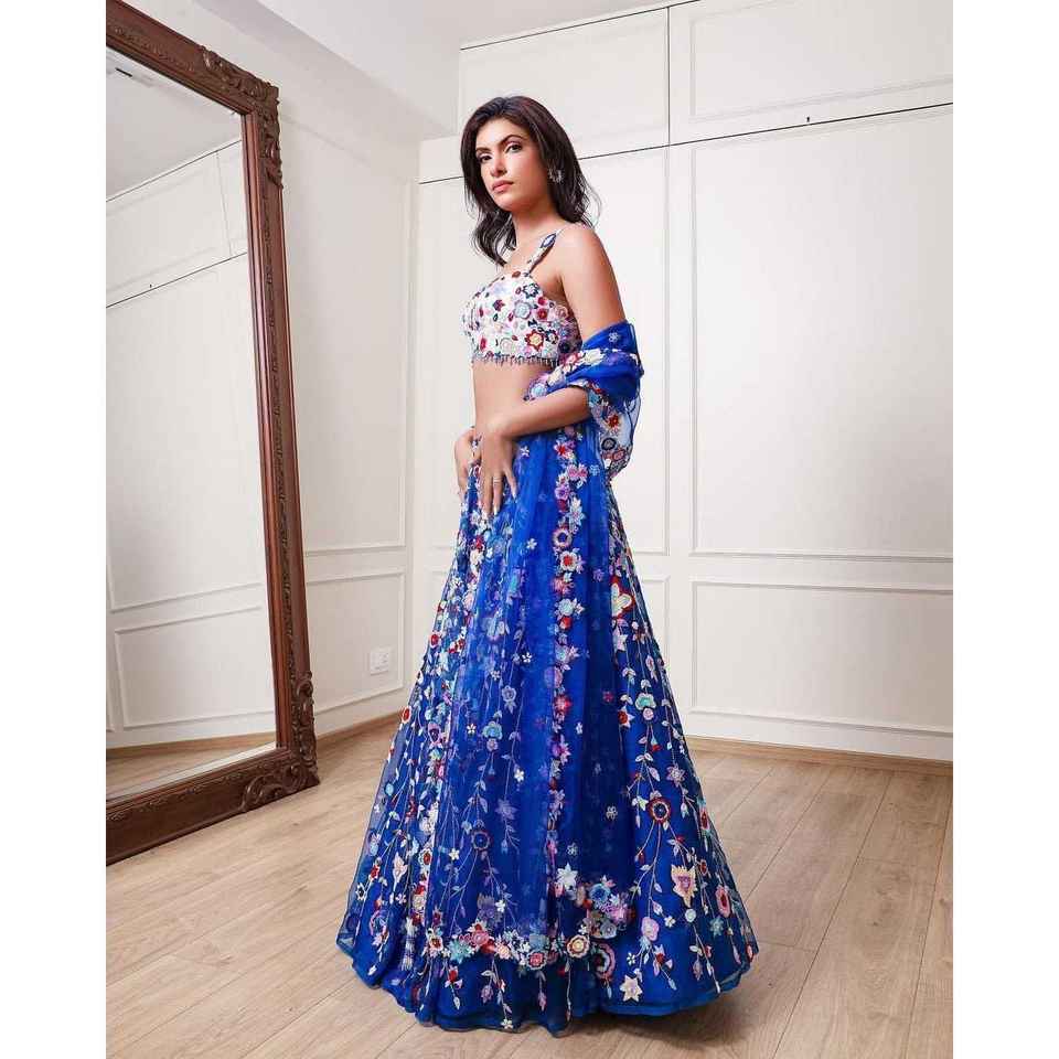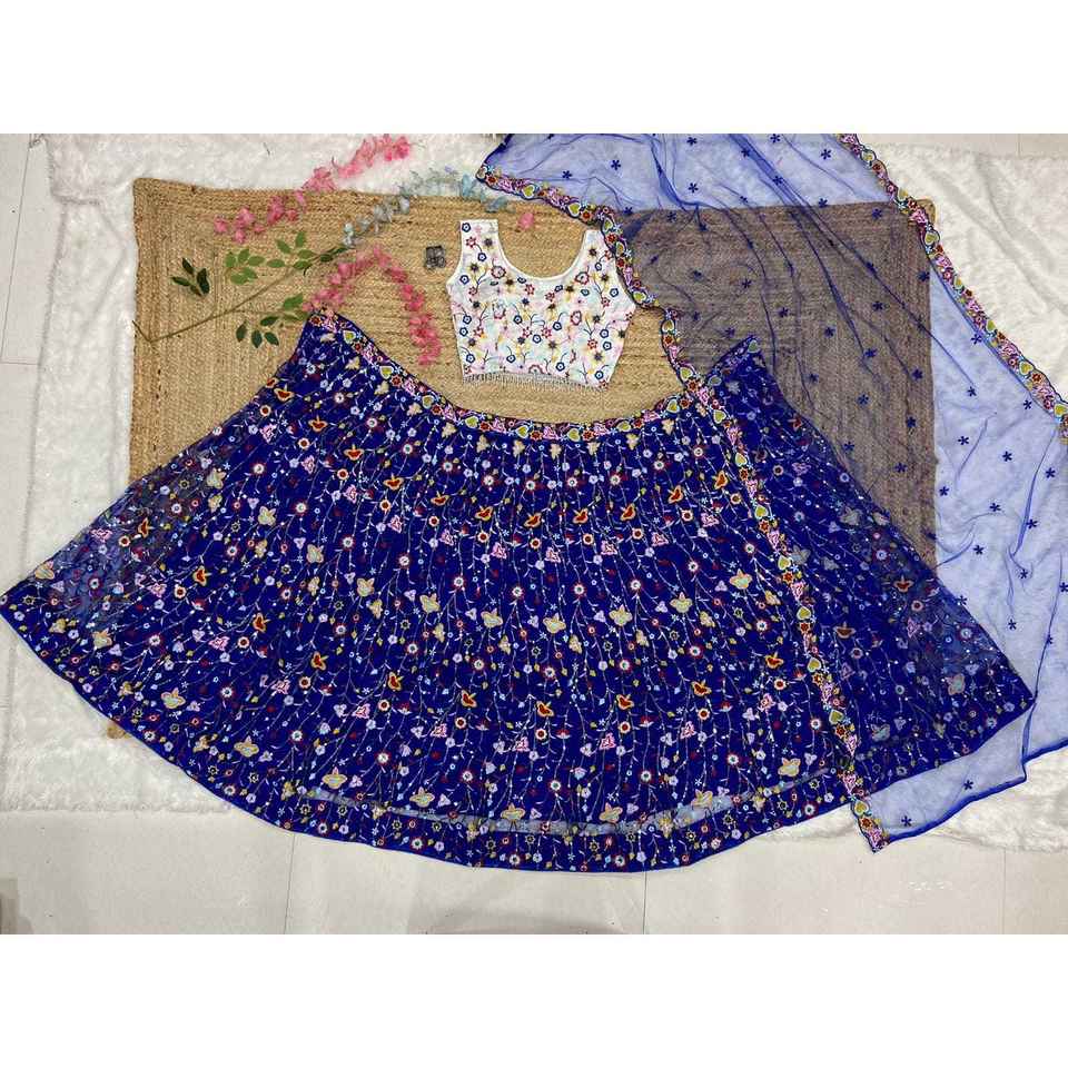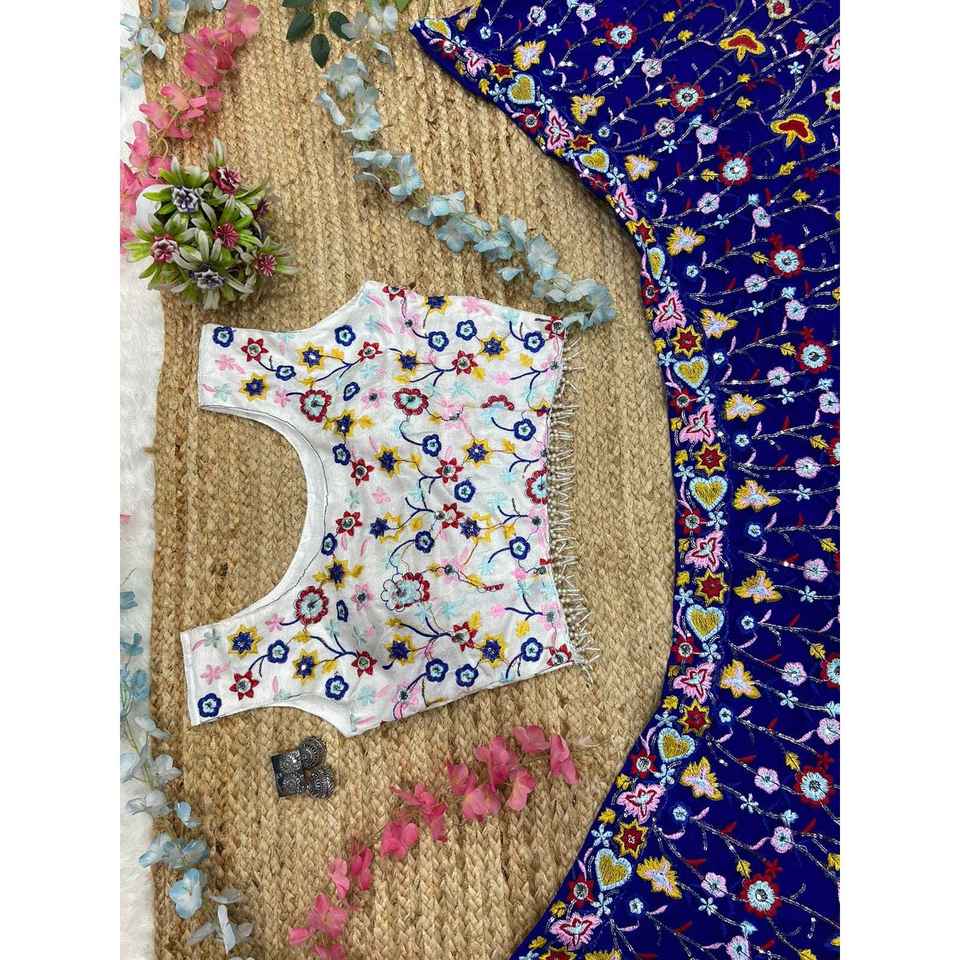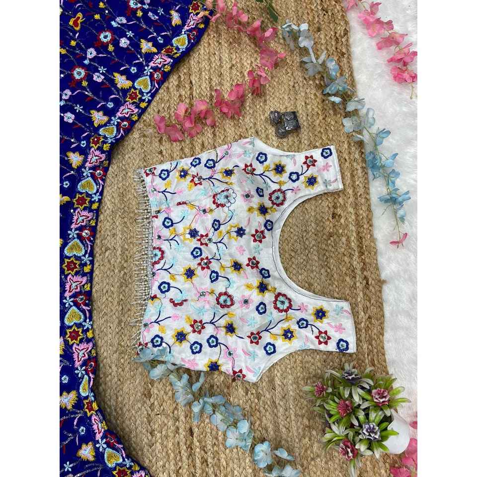 Belle broderie de fil multicolore travail soirée porter Lehenga Choli