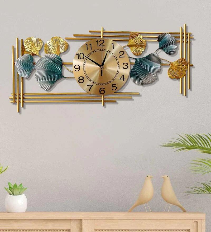 Belle horloge murale en métal feuille de champignon dans un cadre en fer Horloge murale fantaisie faite à la main de qualité supérieure