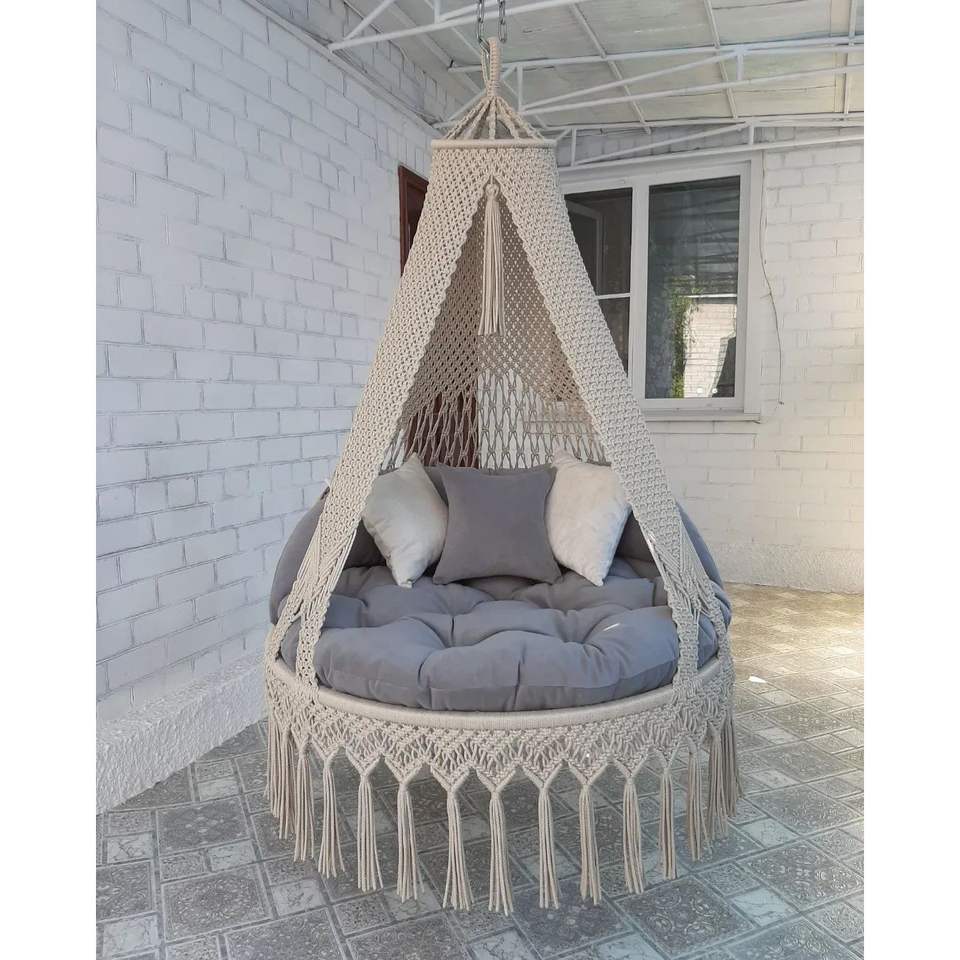 Magnifique chaise suspendue en macramé naturel, chaise à bascule ronde pour l'extérieur, pour l'ameublement