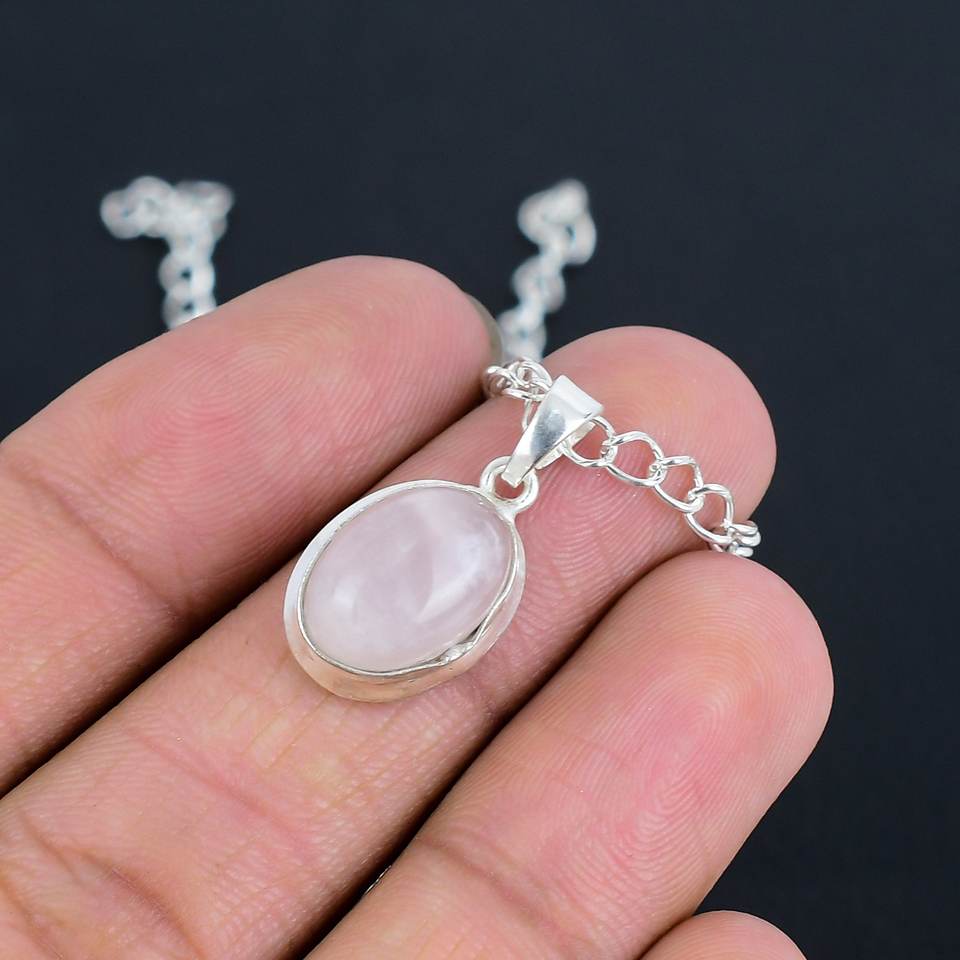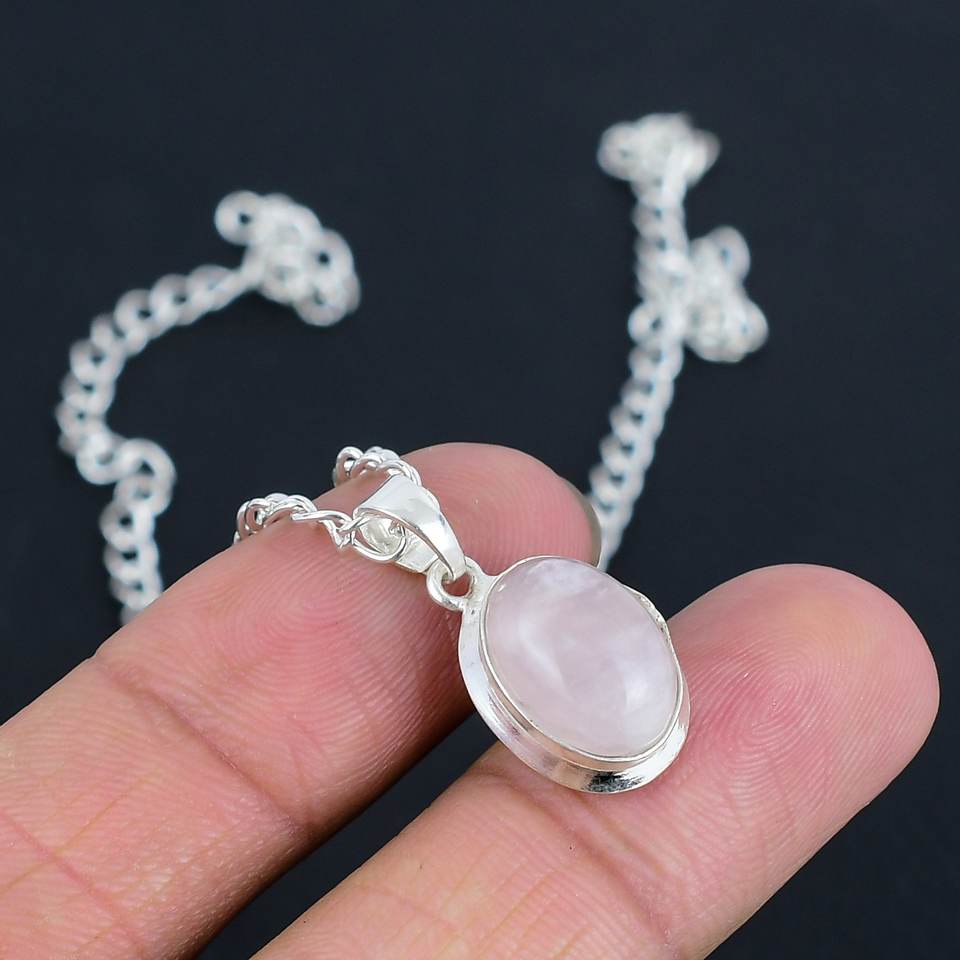 Magnifique collier pendentif en quartz rose naturel, argent sterling 925, 8x10mm, fait main, bijoux minimalistes délicats, cadeau pour elle
