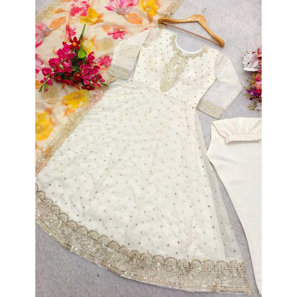 Beautiful Organza Anarkali Gown with Dupatta Modest Party Wear Pent Set