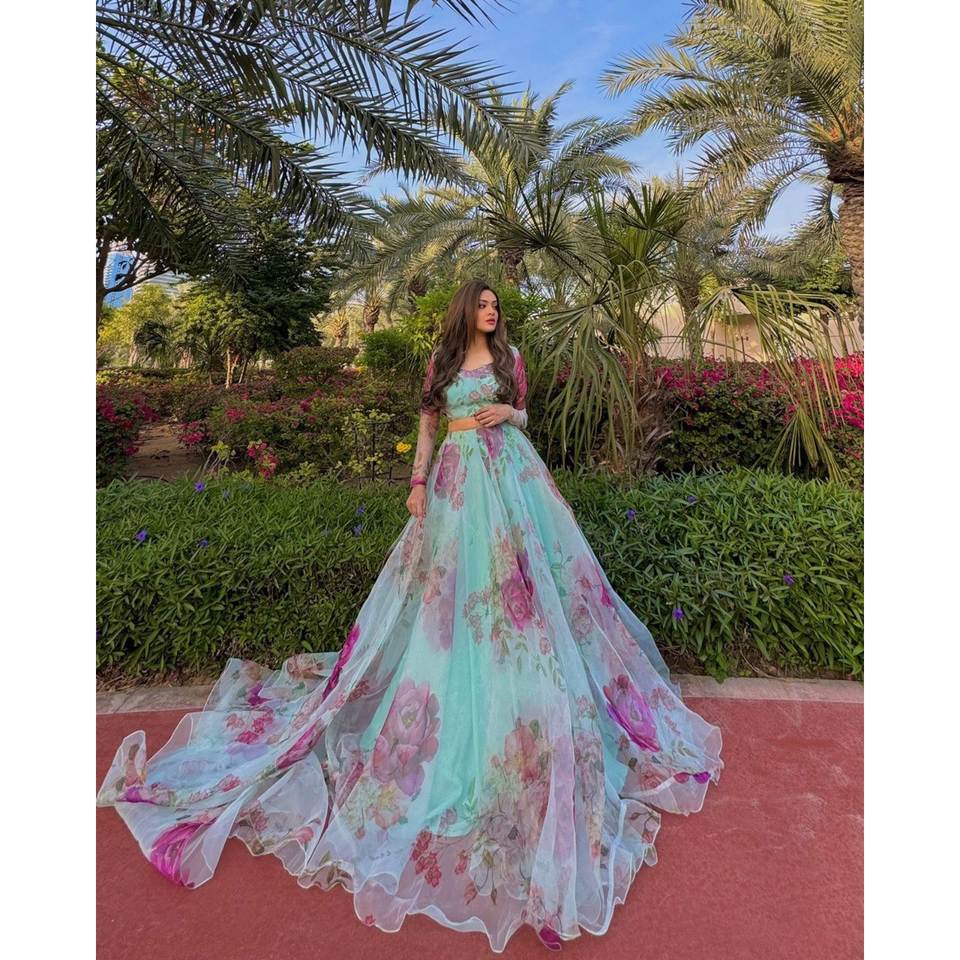 Beautiful Organza Silk Floral Printed Lehenga Choli Elegant Party Wear for Career Women