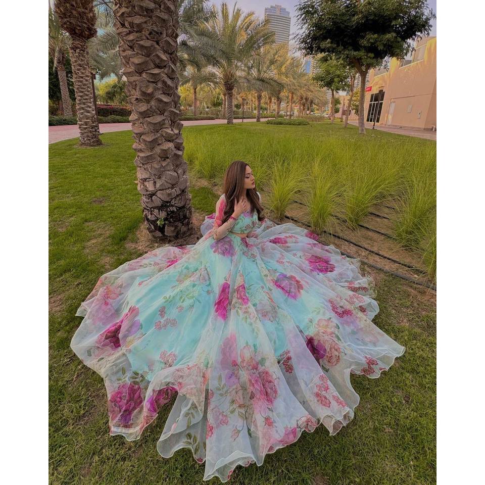 Beautiful Organza Silk Floral Printed Lehenga Choli Elegant Party Wear for Career Women