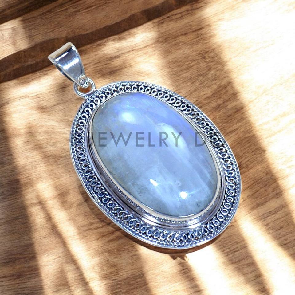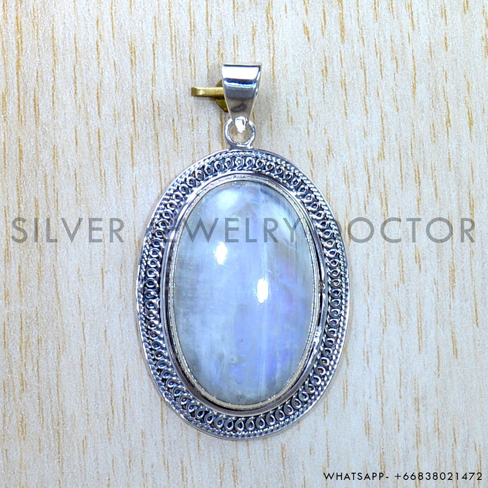 Belle lunette ovale coupée ensemble arc-en-ciel pierre de lune pendentif fantaisie chaîne à maillons en argent Sterling 925 bijoux fantaisie fins pendentifs breloques
