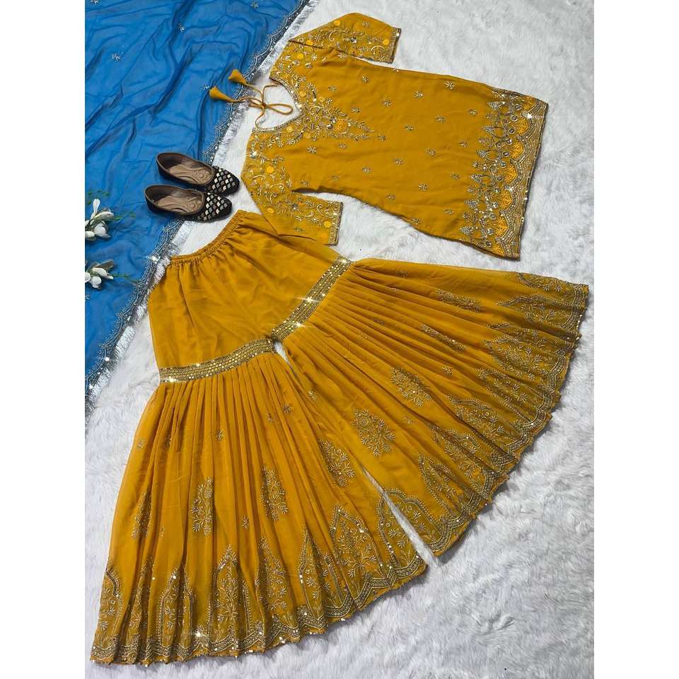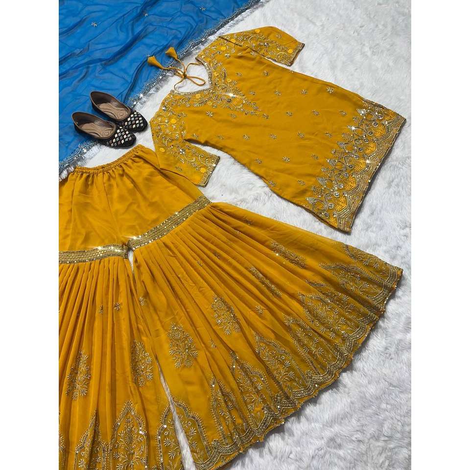 Belle combinaison de fête avec séquence de travail Top Sharara élégant pour les occasions spéciales