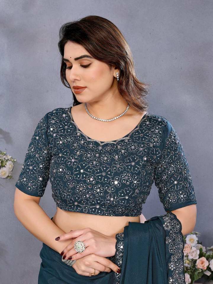 Magnifique collection de saris en soie géorgette douce à séchage rapide, ornée de motifs miroir, pour les fêtes et les cérémonies de remise de diplômes