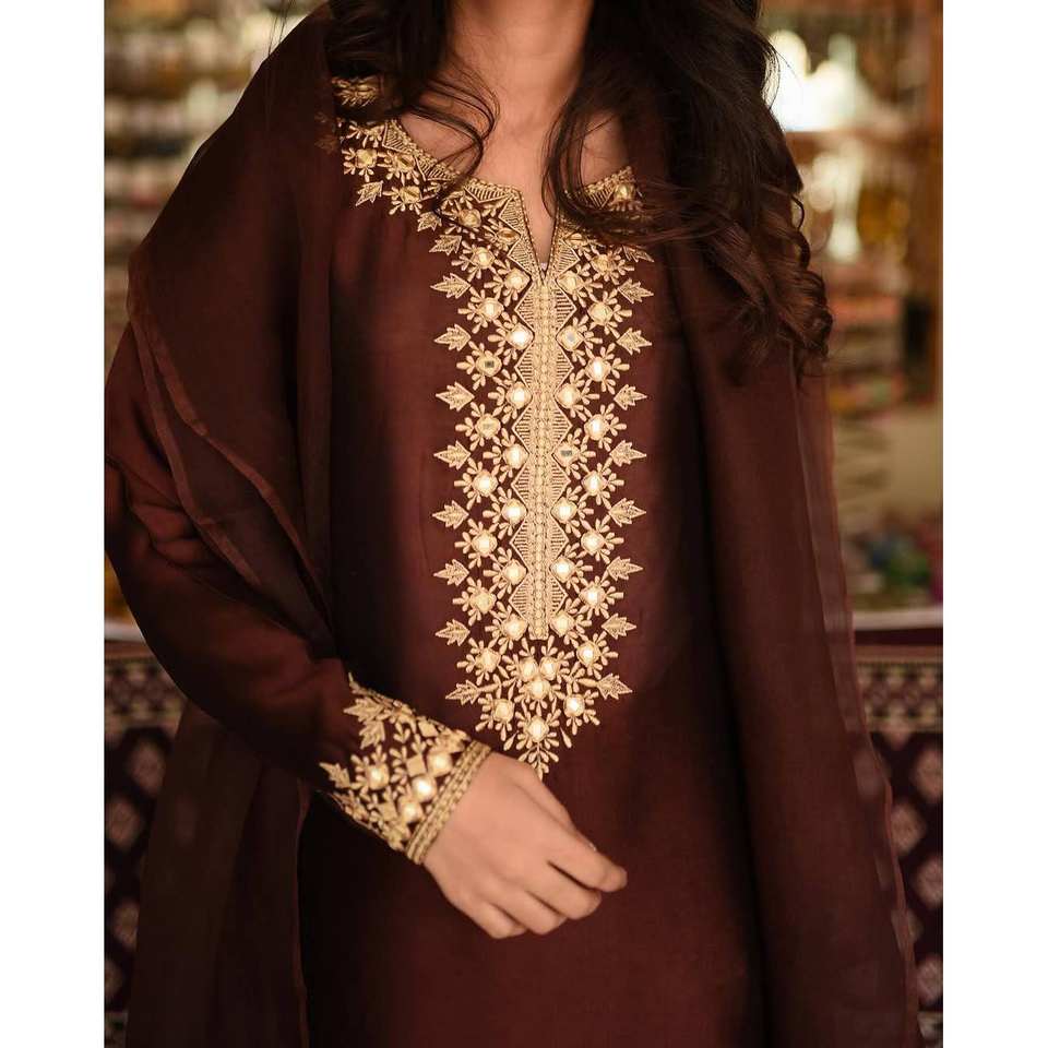 Bel ensemble de costume de fête avec broderie Zari Work Taille XL