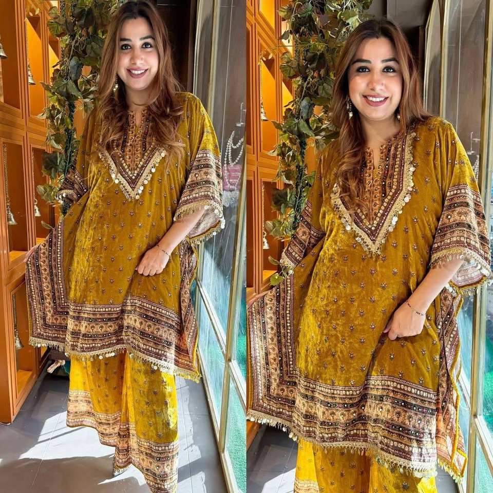 Magnifique haut et bas de fête avec impression numérique et bordure en dentelle Taille XL