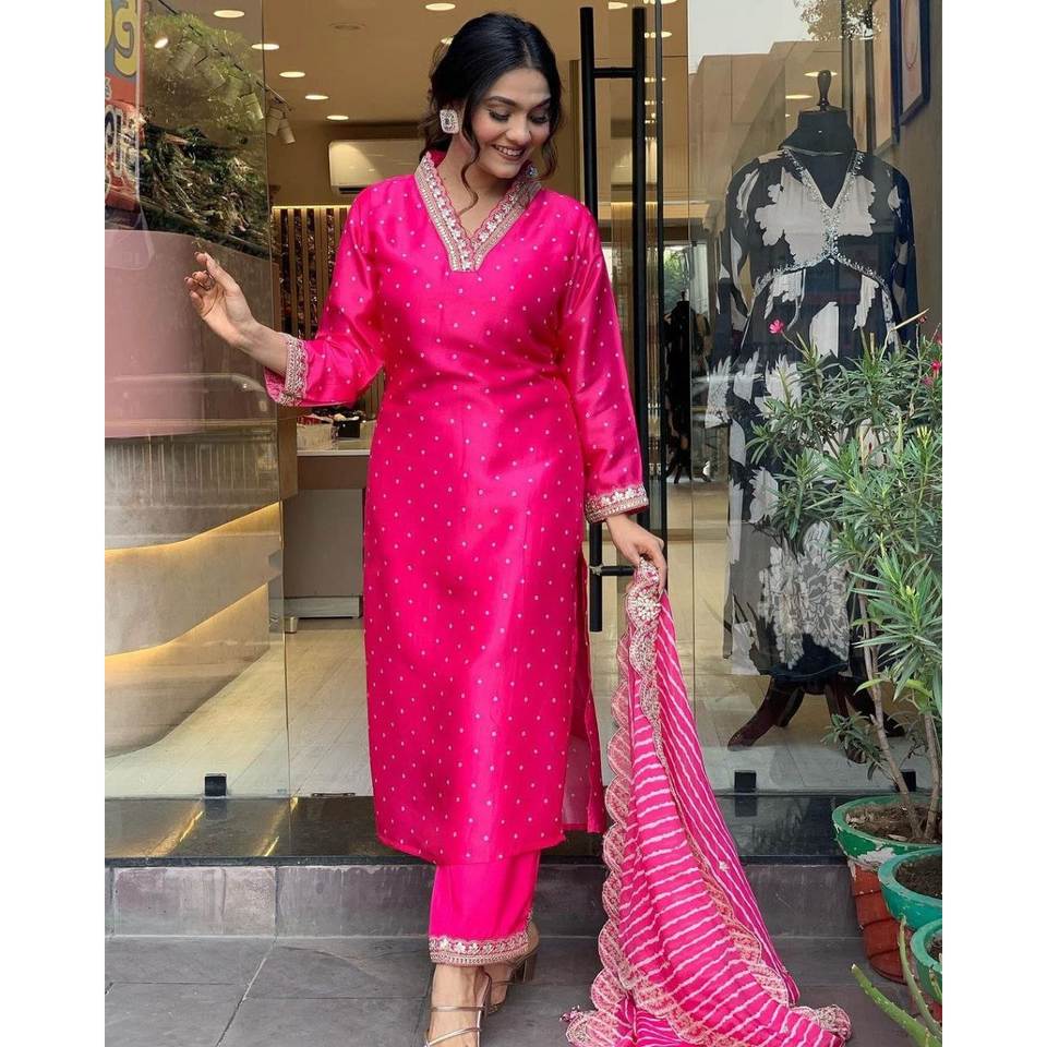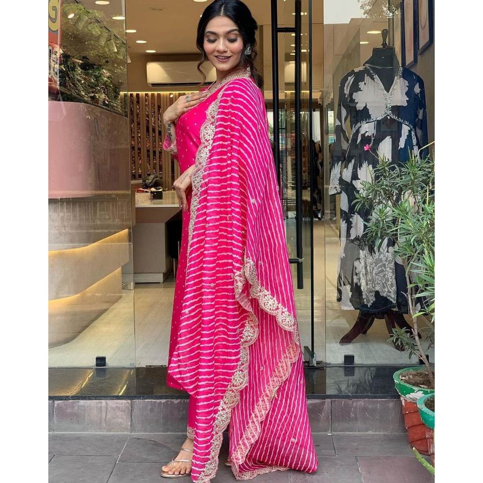 Beau haut et bas de fête avec ensemble élégant de taille Dupatta XL