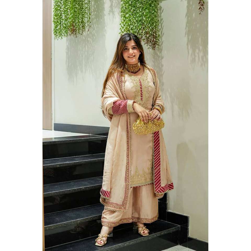 Magnifique ensemble élégant pour soirée, haut et bas avec dupatta, taille XL