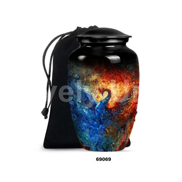 Beautiful Phoenix Bird Aluminium Cremation Adult Urn for Human Ashes Decorative Large Funeral Memorial Urn With Free Velvet Bag