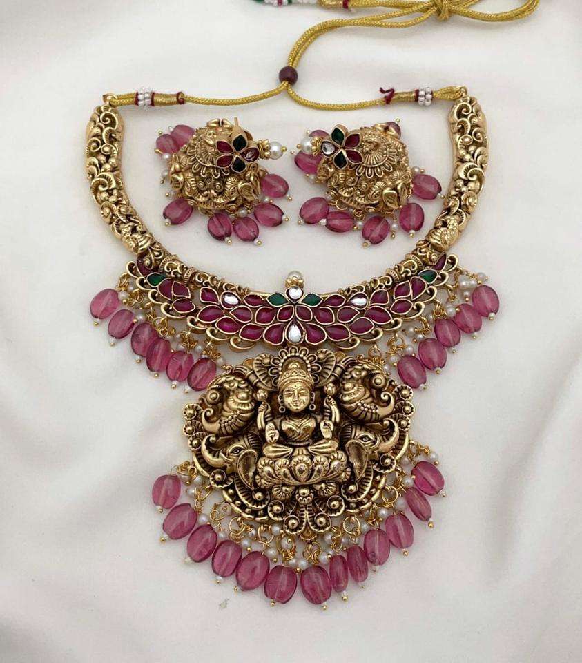 Magnifique collier temple de qualité supérieure avec collier plaqué or serti de boucles d'oreilles pour mariage pour femme