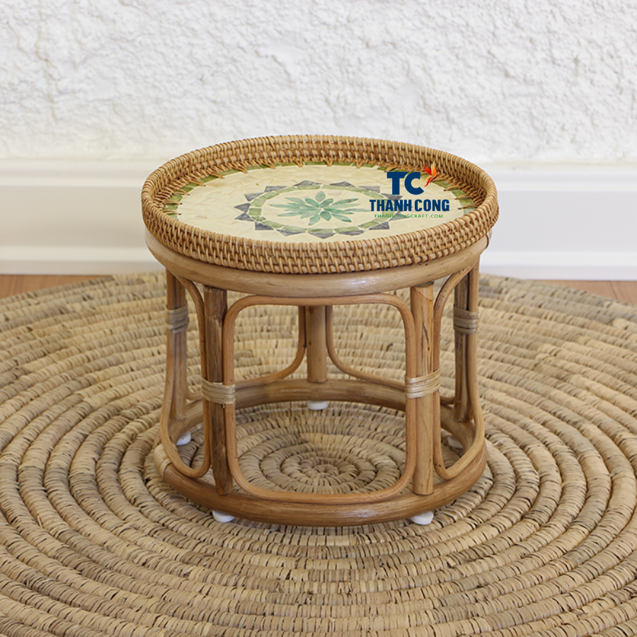 Belle table d'appoint en rotin avec incrustation de vadrouille Mobilier artisanal pour l'affichage festif de l'Aïd et la décoration de la salle Diwali