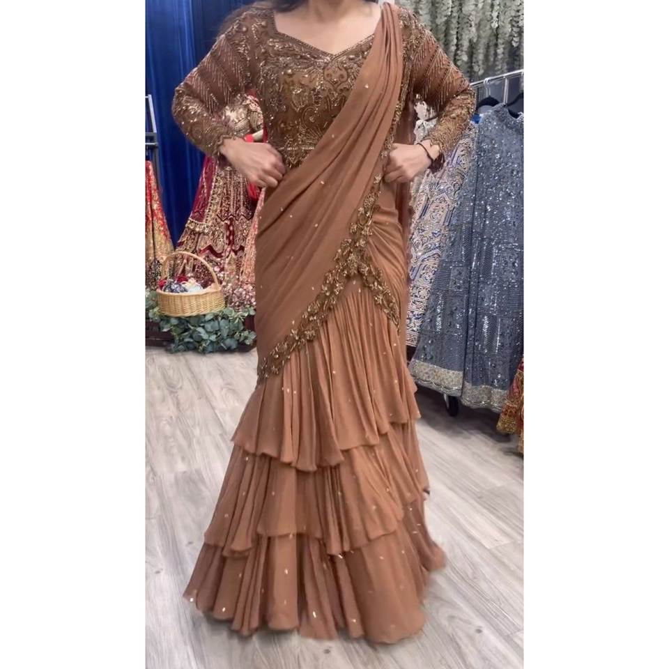 Beautiful Ready-to-Wear A-Line Lehenga Saree Chiffon Fabric Natural Waistline for Party Wear