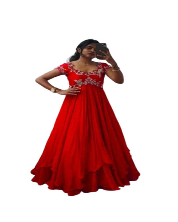 Magnifique robe longue de style Anarkali en soie premium avec broderie, pour réception et soirée, avec ensemble dupatta