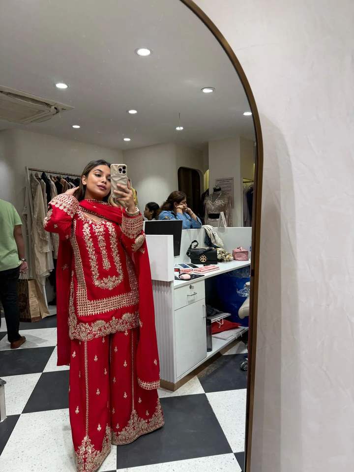 Belle collection de vêtements de fête de couleur rouge spécialement conçue pour Karwa Chauth tenue traditionnelle parfaite pour les femmes
