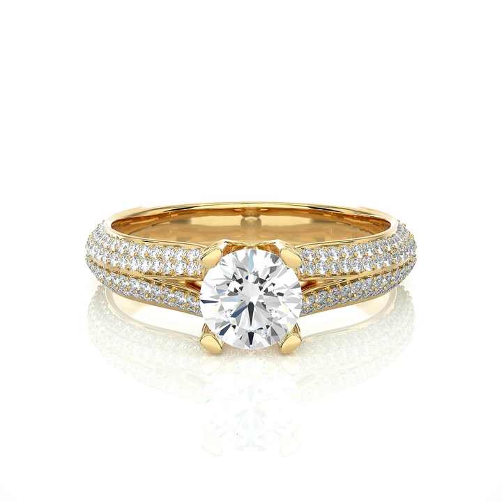 Bague de fiançailles solitaire pavée à trois rangs avec diamant de laboratoire rond de 2 carats en or jaune 10K 18K, bijou de luxe pour mariée