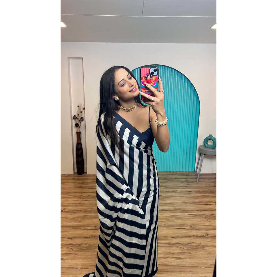 Beautiful Satin Lanyards Saree Ready to Wear Digital Print Party Dress